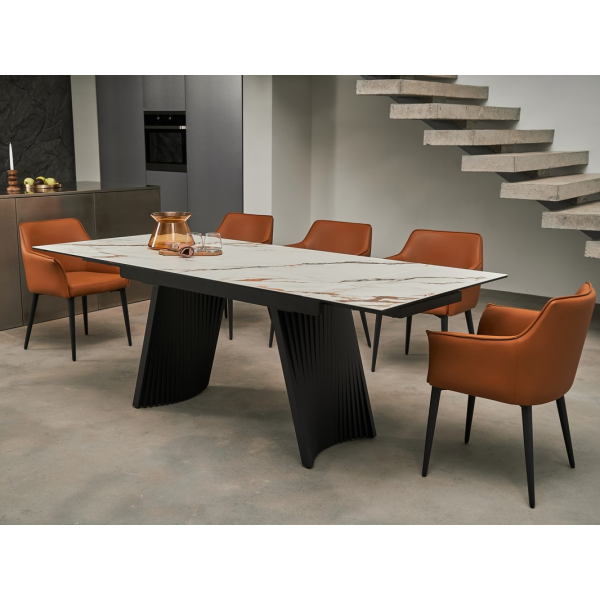 Цей стіл не лише має стильний вигляд, але й забезпечує функціональність для щоденного використання, завдяки своїм розмірам і надійним матеріалам. Він стане чудовим вибором для просторих обідніх зон або віталень, додаючи інтер'єру атмосферу розкоші і комфорту.