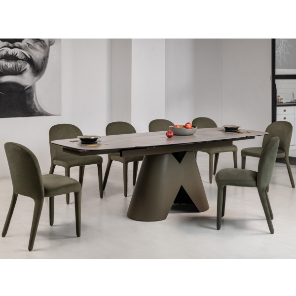 Стильний колір "айрон бронз" створює атмосферу елегантності та вишуканості, додаючи інтер'єру нотки розкоші. Матова керамічна стільниця з гартованим склом має не тільки сучасний вигляд, а й приємну на дотик текстуру, що додає тепла у ваш простір.