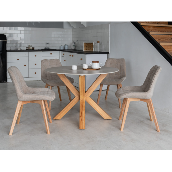 Діаметр 110 см робить його ідеальним варіантом для сімейних обідів або дружніх посиденьок, а кругла форма сприяє комфортному спілкуванню.