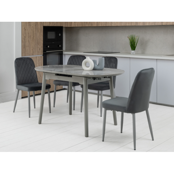 Завдяки своїй компактній овальній формі і розмірам - 110 см у довжину і 75 см у ширину, цей стіл ідеально підходить для маленьких їдалень. Розкладна конструкція з максимальною довжиною стільниці 140 см робить його ще більш практичним для різних подій - від сімейних обідів до вечірок з друзями.