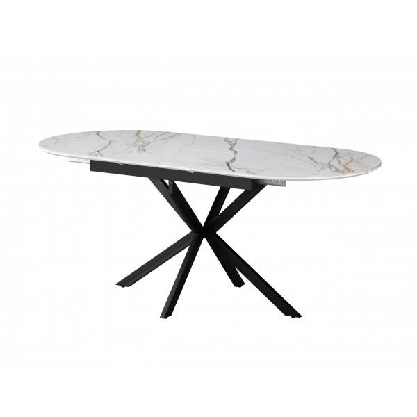 Керамічний стіл Верона TML-1335 калакатта голд + чорний — це вишукане поєднання елегантності, стилю та сучасних технологій. Його овальна форма додає м’якості лініям інтер’єру, а відтінок калакатта голд із благородними прожилками нагадує текстуру природного мармуру, створюючи відчуття розкоші та витонченості.