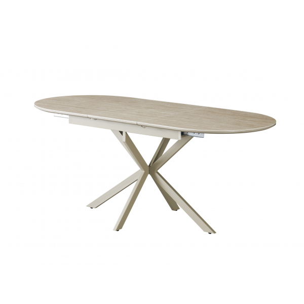 Керамічний стіл Верона TML-1335 римський травертін + капучино — це втілення витонченості та природного шарму в сучасному виконанні. Його овальна форма додає простору м’якості, а теплі відтінки римського травертіну створюють атмосферу спокою та гармонії.