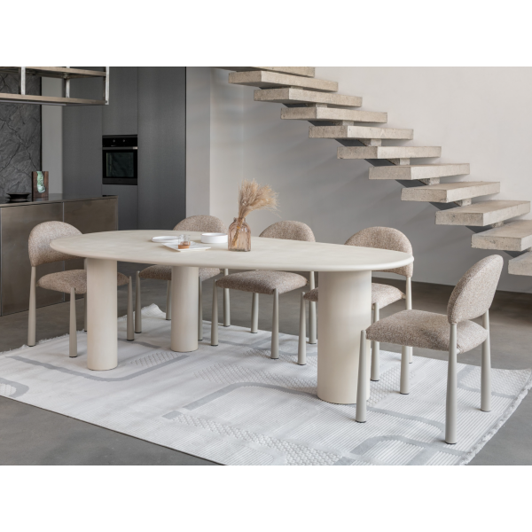 Стіл Бастіано TМ-225 в кольорі бетон — це сучасне рішення для тих, хто цінує поєднання елегантності та практичності. Овальна форма та матове мікроцементне покриття надають столу індустріального вигляду, який чудово впишеться в будь-який стиль інтер'єру — від сучасного до лофт або мінімалізму.