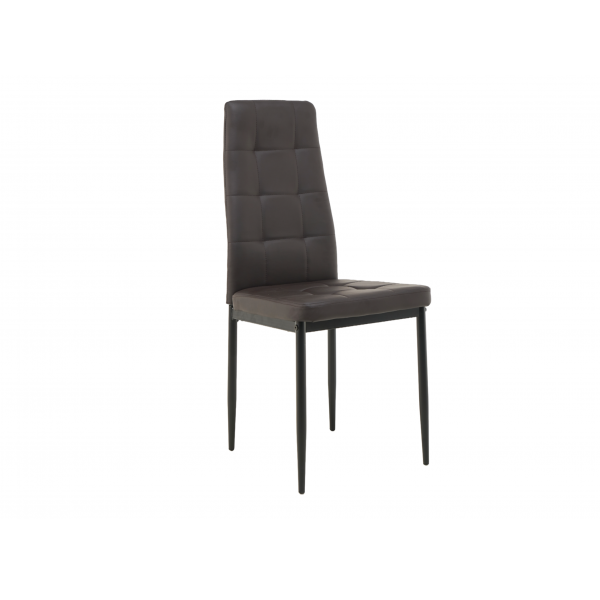Стілець N-66-2 в кольорі коричневий + чорний поєднує елегантність та сучасний стиль, що робить його відмінним вибором для різноманітних інтер'єрів. Оббивка з еко-шкіри коричневого кольору створює атмосферу тепла і затишку, водночас є практичною, оскільки легко чиститься та не вимагає особливого догляду. Металеві ніжки чорного кольору надають стільцю стабільність і витривалість, що робить його підходящим для щоденного використання.