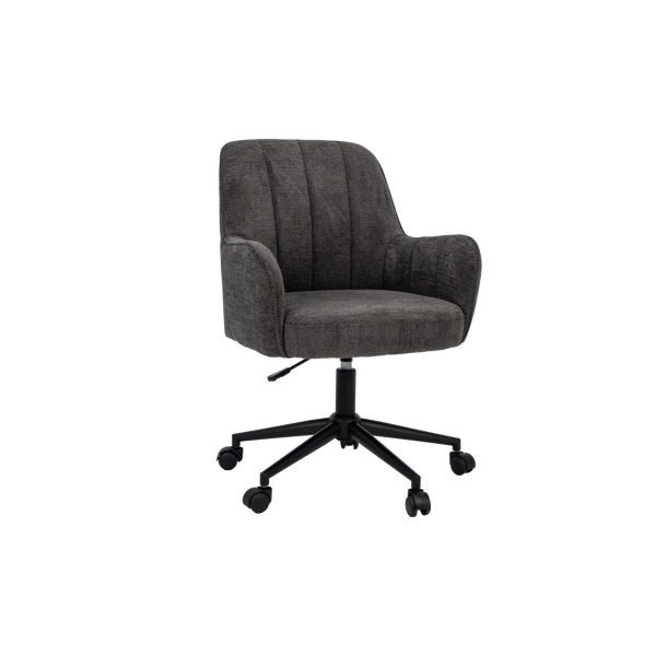 Оббивка з м’якого шенілу у відтінку темний графіт має приємну на дотик фактуру та вирізняється зносостійкістю, зберігаючи елегантний вигляд навіть після тривалого використання. Ергономічна форма спинки забезпечує підтримку хребта, а м’яке сидіння сприяє комфортному положенню тіла протягом робочого дня.