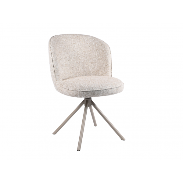 Ця модель має обертальну основу на 360° з автоповоротом, що забезпечує зручність рухів та мобільність. Оббивка з високоякісного твиду у відтінку "френч ваніль" виглядає витончено та приємно на дотик. Теплий відтінок ванілі надає стільцю легкості та розкішного вигляду, гармонійно поєднуючись з капучиновими металевими ніжками, що додають елегантності.